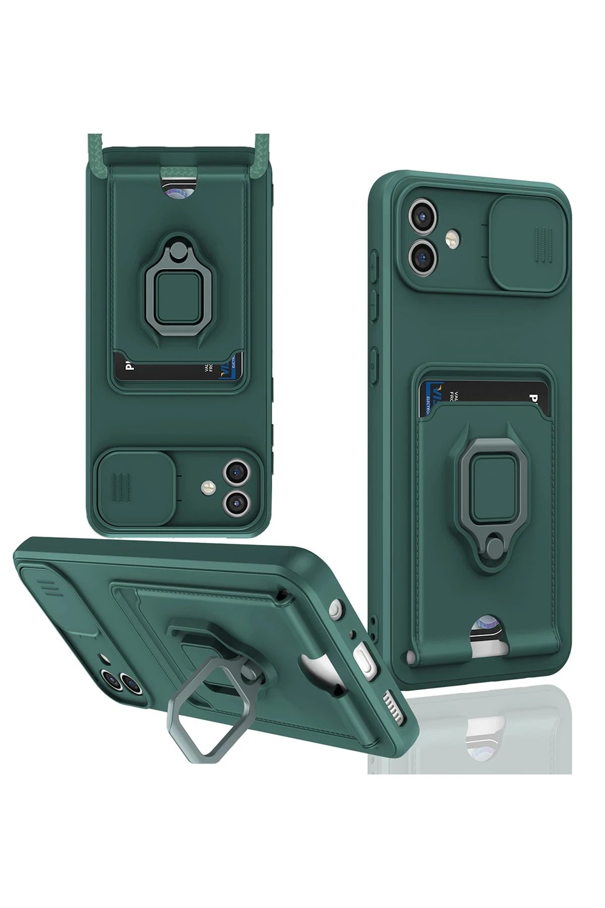 Samsung Galaxy A05 Kılıf Zuma Kartvizitli Yüzüklü Silikon – Yeşil-(5796)