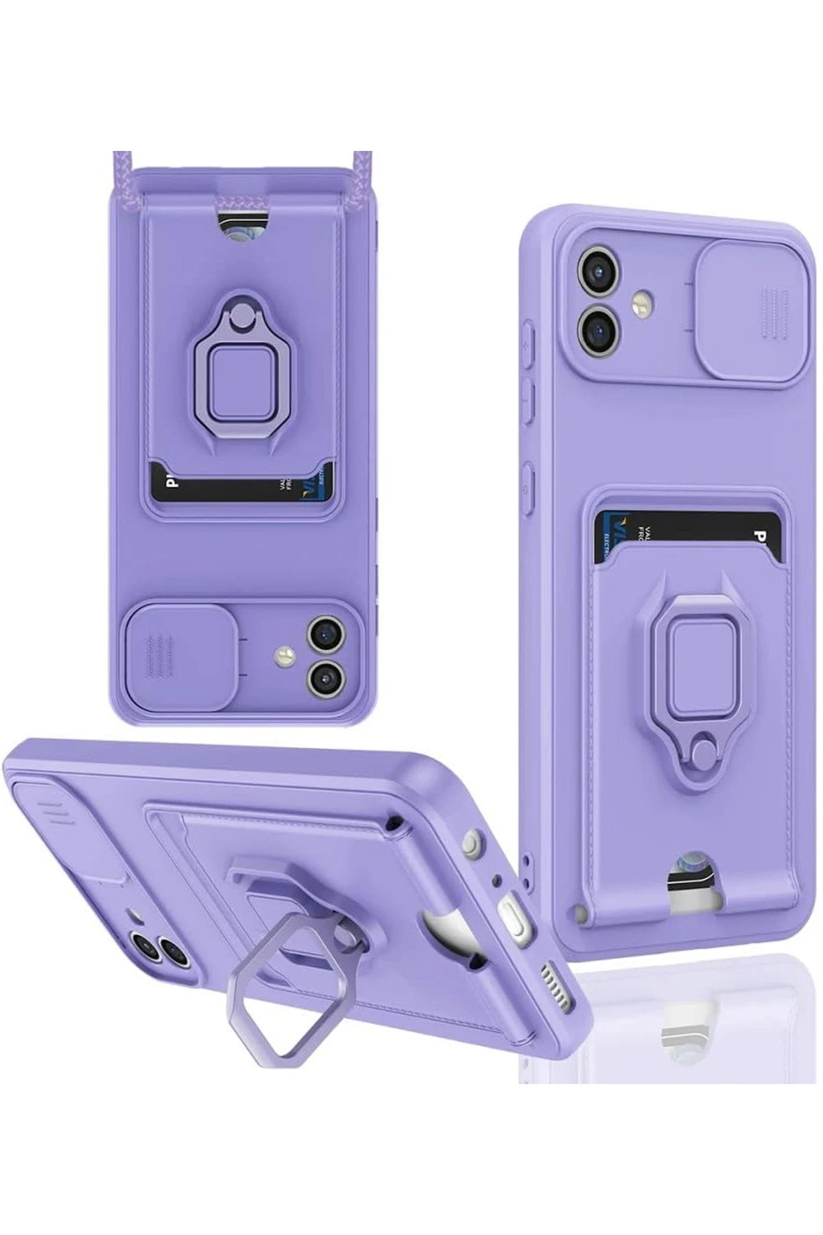 Samsung Galaxy A06 Kılıf Zuma Kartvizitli Yüzüklü Silikon – Lila-(5796)