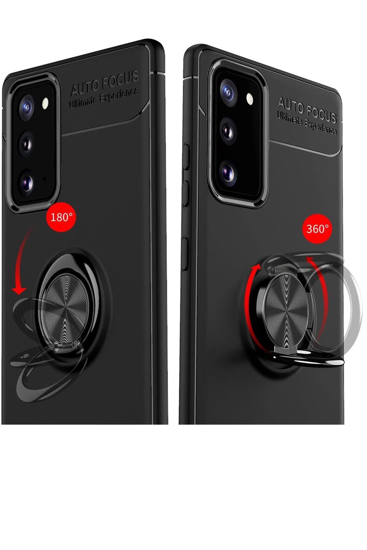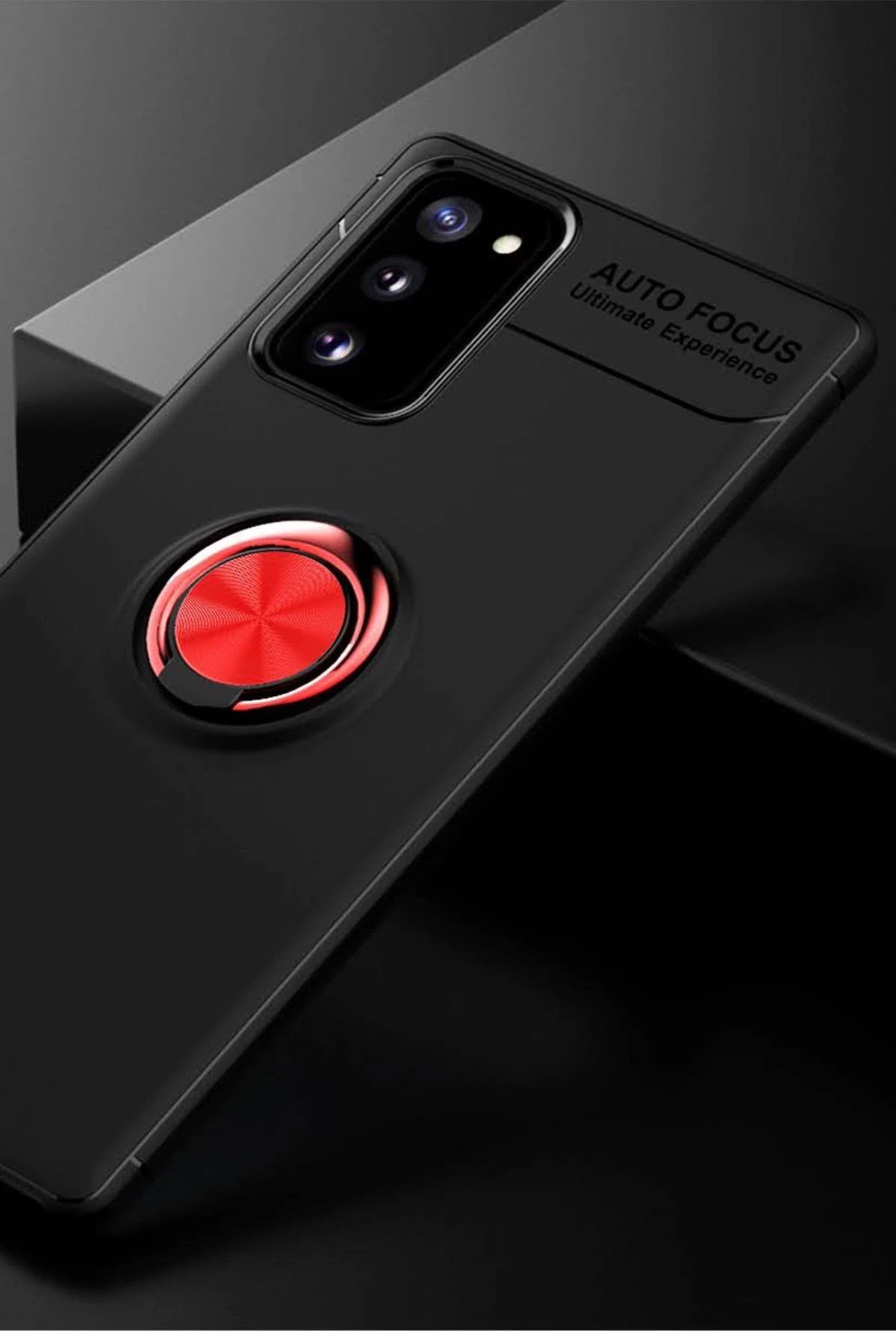 Samsung Galaxy Note 20 Kılıf Range Yüzüklü Silikon – Siyah-Kırmızı-(5796)