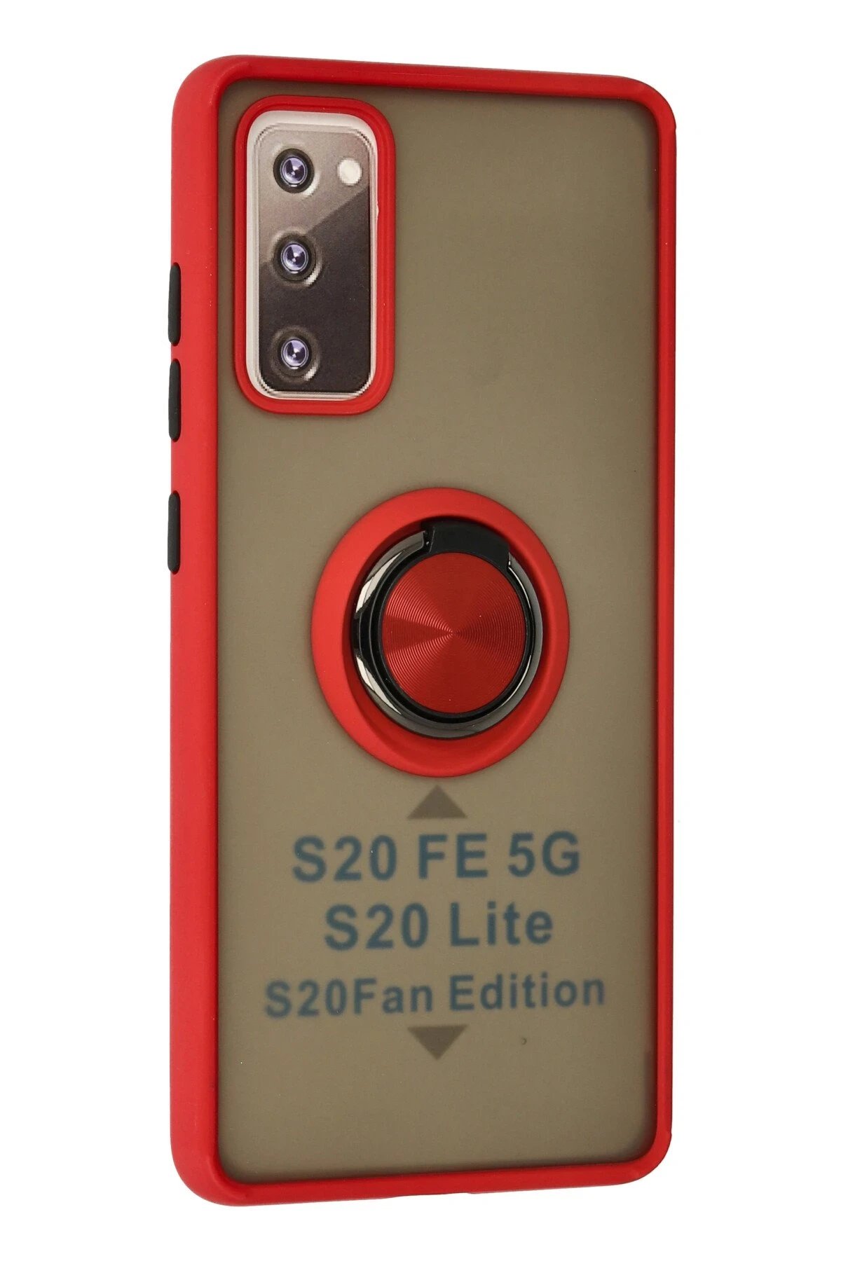 Samsung Galaxy S20 FE Kılıf Montreal Yüzüklü Silikon Kapak – Kırmızı-(5796)
