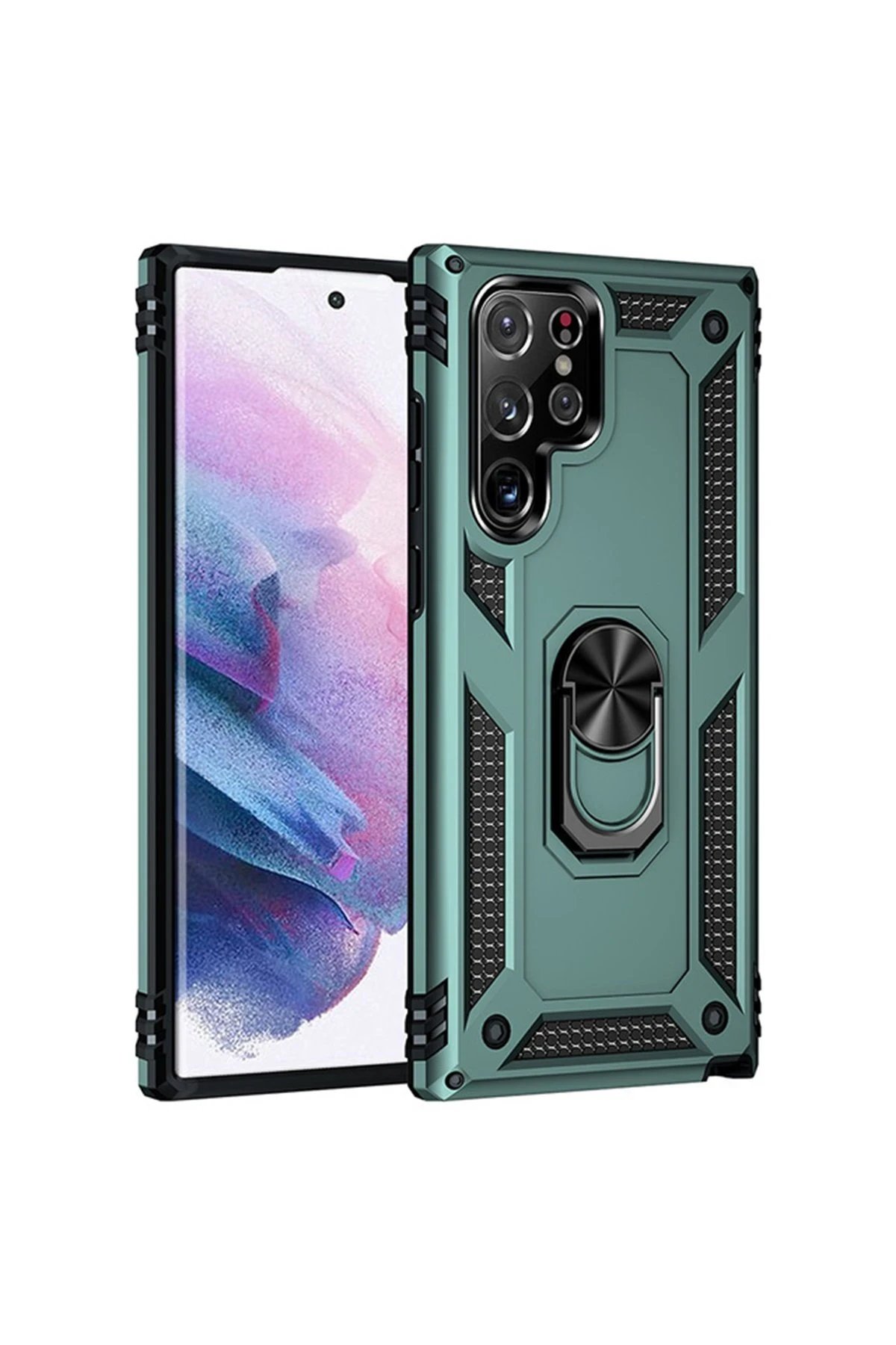 Samsung Galaxy S21 Ultra Kılıf Sofya Yüzüklü Silikon Kapak – Yeşil-(5796)