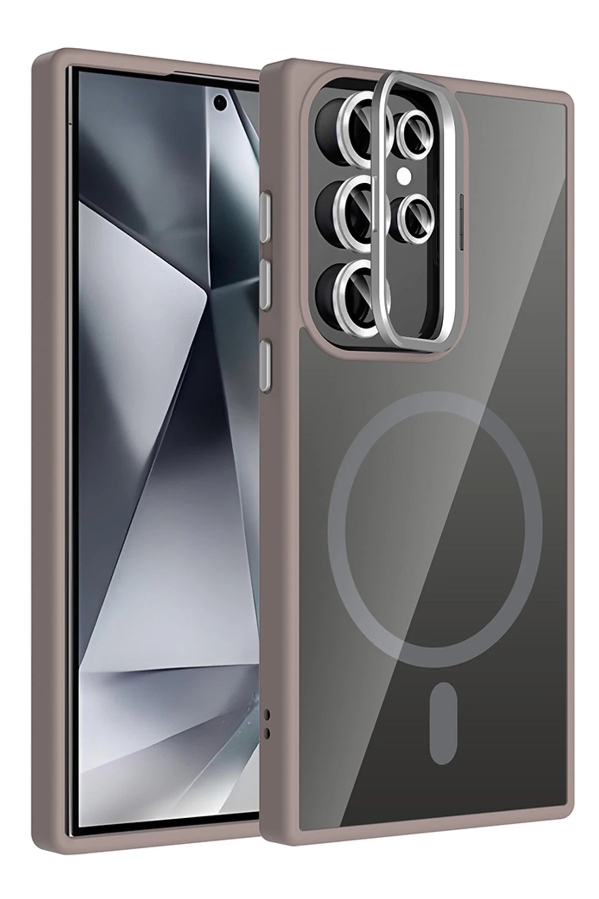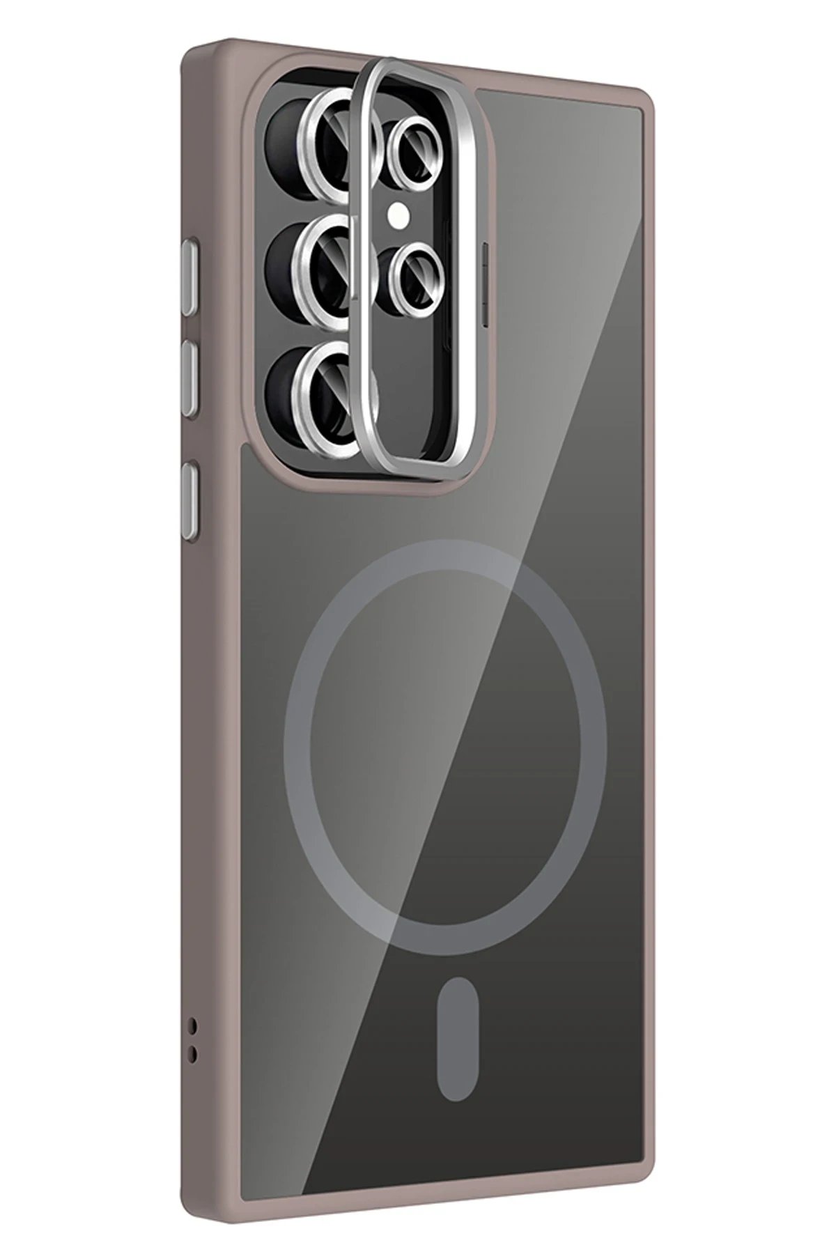 Samsung Galaxy S24 Ultra Remim Lensli Magsafe Standlı Kapak – Titan Gri-(5796)