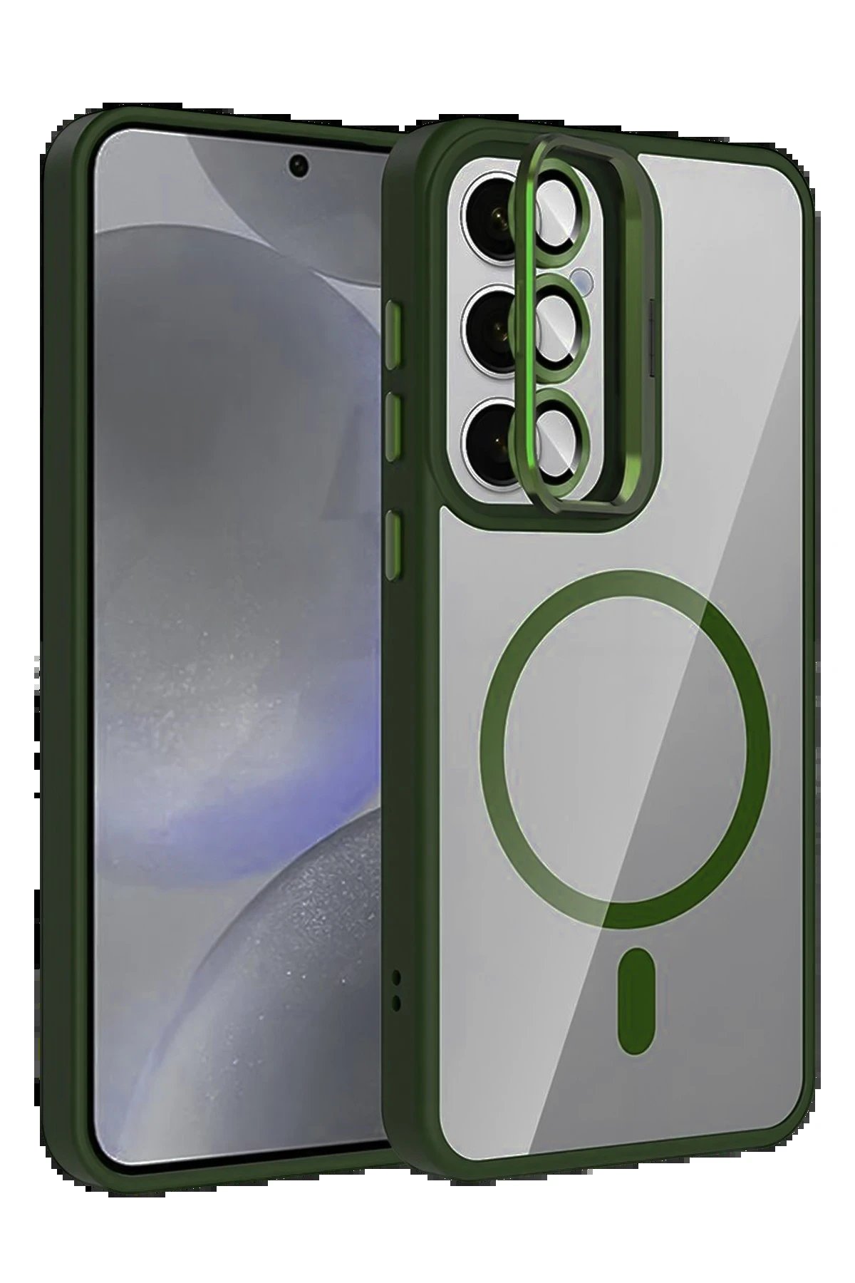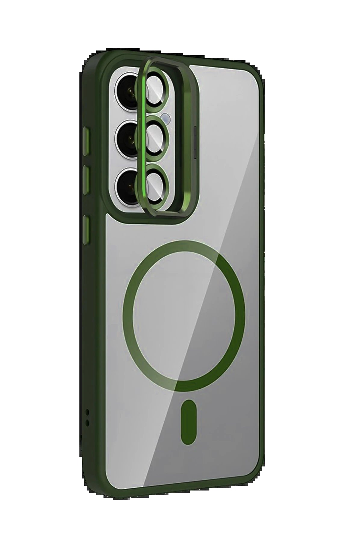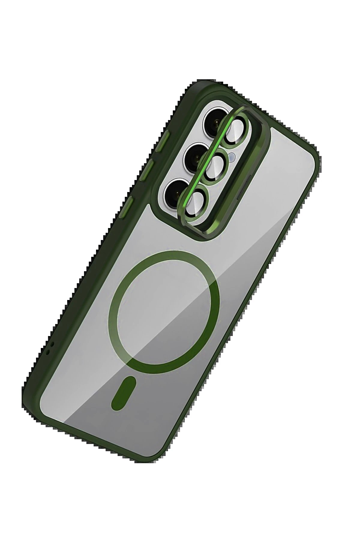 Samsung Galaxy S25 Remim Lensli Magsafe Standlı Kapak – Koyu Yeşil-(5796)