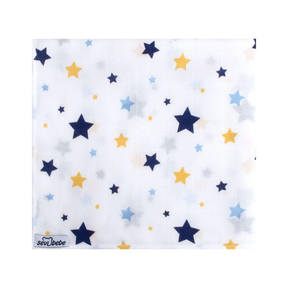 Sevi Bebe Desenli Müslin Bebe Battaniye 120×100 ART-319 Yıldız Yağmuru Mavi