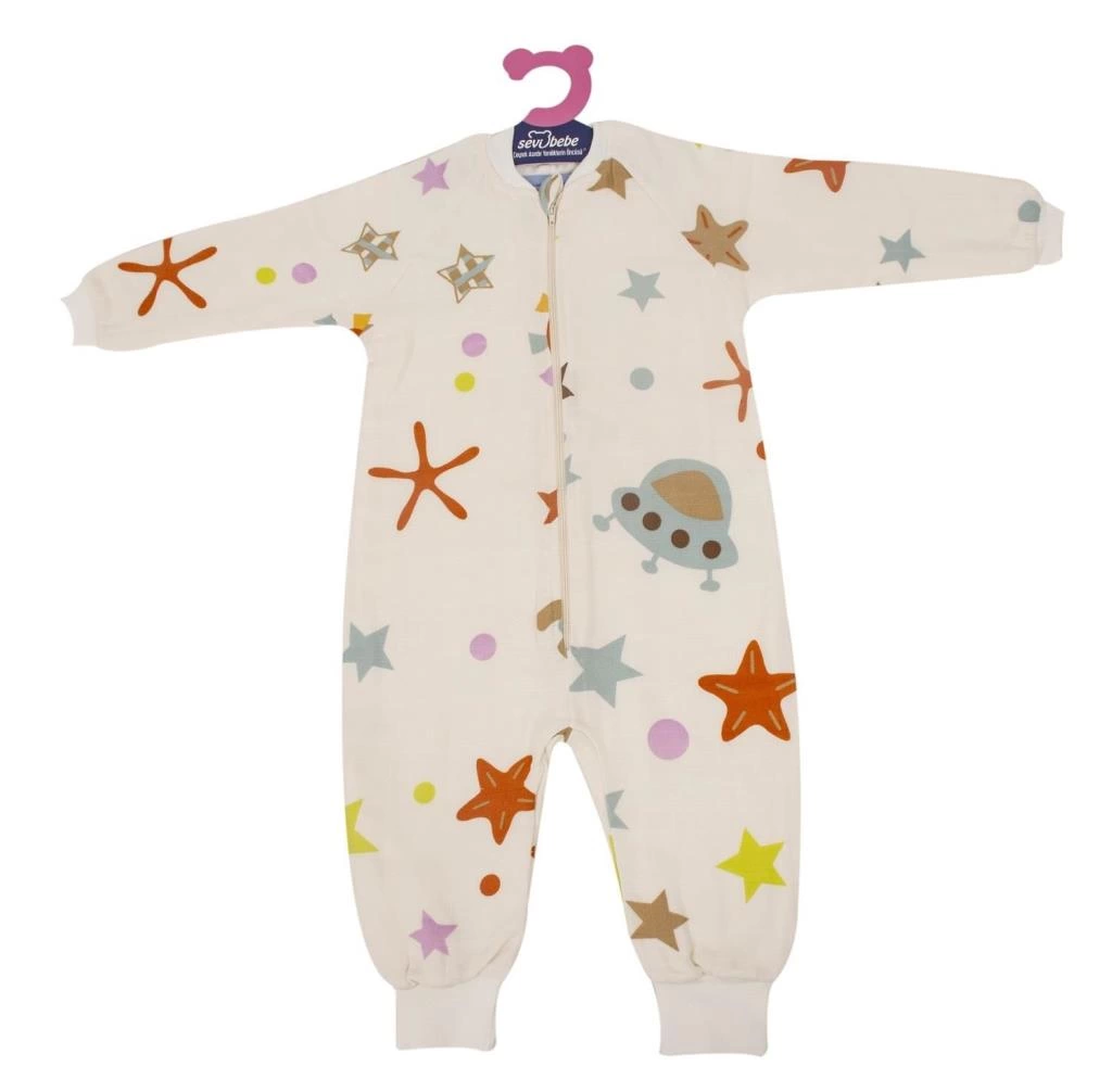 Sevi Bebe organik müslin uyku tulumu çift kat %100 pamuk organik müslin kumaştan üretilmiştir.