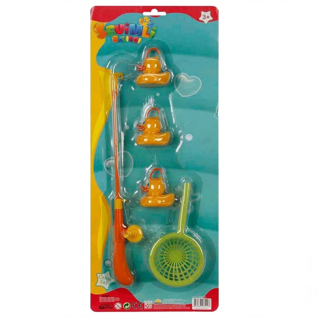 Set içerisinde; 3 adet ördek, 1 adet balık süzgeci ve 1 adet olta yer almaktadır.