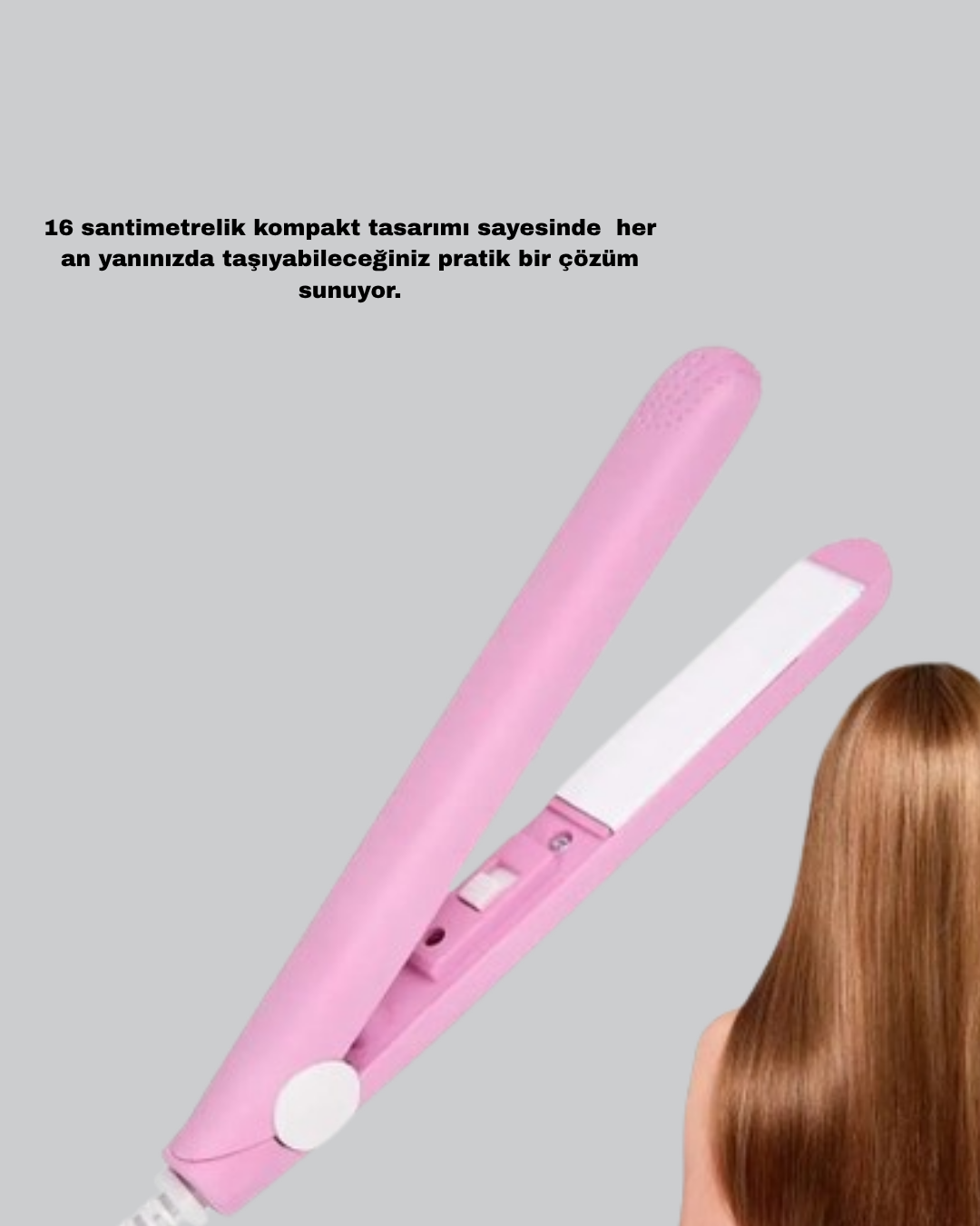 Seyahatlerde ya da yoğun günlerde saç bakımınızı aksatmayın! Seyahat Tipi Mini Saç Düzleştirici, 16 cm’lik pratik boyutu ve gelişmiş seramik kaplama teknolojisiyle her an kusursuz saçlar için yanınızda. Hafif ve taşınabilir yapısı, valizinize veya el çantanıza kolayca sığar.180°C’ye kadar hızlı ısınma özelliği sayesinde yalnızca birkaç dakika içinde kullanıma hazır hale gelir. Seramik kaplamalı plakaları, saç tellerine zarar vermeden ısıyı eşit şekilde dağıtır; bu sayede saçlarda elektriklenme ve yanma olmadan düz, parlak ve yumuşak bir görünüm elde edersiniz.Küçük boyutu sadece taşınabilirlik değil, aynı zamanda hassas şekillendirme avantajı da sağlar. Kahkül düzleştirmek, saç uçlarını toparlamak veya küçük dalgalar oluşturmak için idealdir.Güvenli kullanım sağlayan ısı yalıtımlı dış gövde ve ergonomik tutma kolu, uzun süreli kullanımlarda bile rahatlık sunar.Şık görünümüyle modern tarzınıza uyum sağlar, ister günlük kullanımda ister seyahatte saç bakım rutininizin vazgeçilmezi olur.Taşınabilir Seramik Mini Saç Düzleştirici, güzelliği her yere taşıyanların favori bakım aracı olacak!