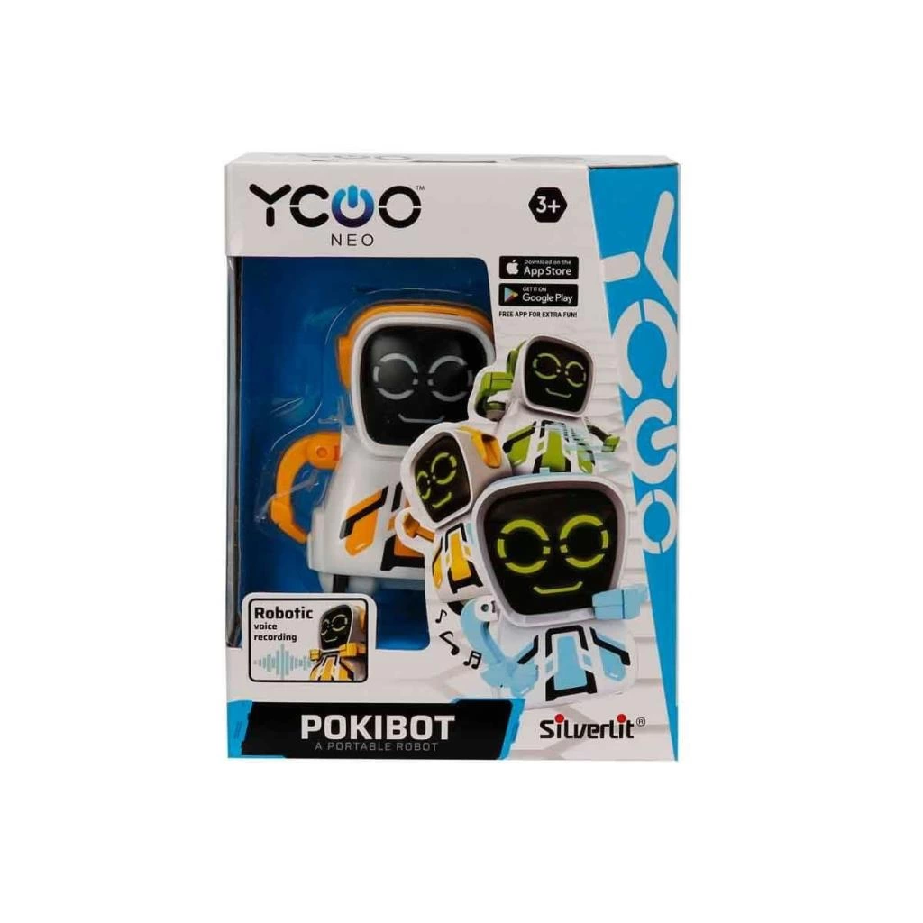 Silverlit Pokibot Robot ile eğlence dolu robotik macera başlıyor! Pokibot dans edebilen konuşma ve sesleri tekrar etme kabiliyetine sahip çevreyle etkileşimli interaktif bir robottur. Pokibot tıklama, vuruş, alkış ve benzeri ses girişimlerine karşı farklı ses ve eylemlerle yanıt verebilir. Mesajınızı robotik sese çevirerek konuşabilir. Çalışır konumda iken gözlerindeki ışıklar yanıp robot 15 saniye kullanılmadığında art arda 3 kez uyarı verir ve hareket olmadığında kendisini uyku moduna alarak güç tasarrufu sağlar. Diğer Pokibot ya da Maze Breaker & Macro Bot gibi Silverlit markalı robotlar ile etkileşime girebilir. Daha fazla bilgi için lütfen ücretsiz uygulamayı indiriniz. Pokibot IOS & Android versiyonlu cep telefonlarındaki uygulamalar ile kontrol edilebilir. Serinin farklı renklerde birbirinden eğlenceli birçok modeli bulunmaktadır.Robot: 1 x AAA pil ile çalışmaktadır. Piller kutuya dahil değildir.