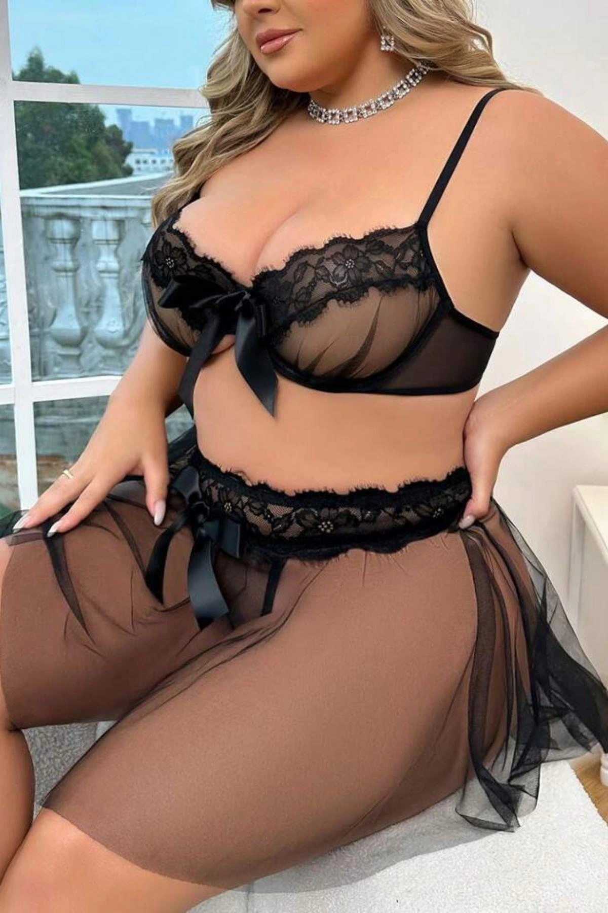 Siyah Askılı Büyük Beden Etekli Tül Takım 18521