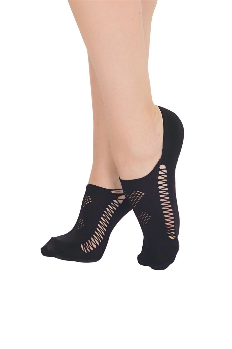 YNT Siyah Çiçekli Baget Çorap