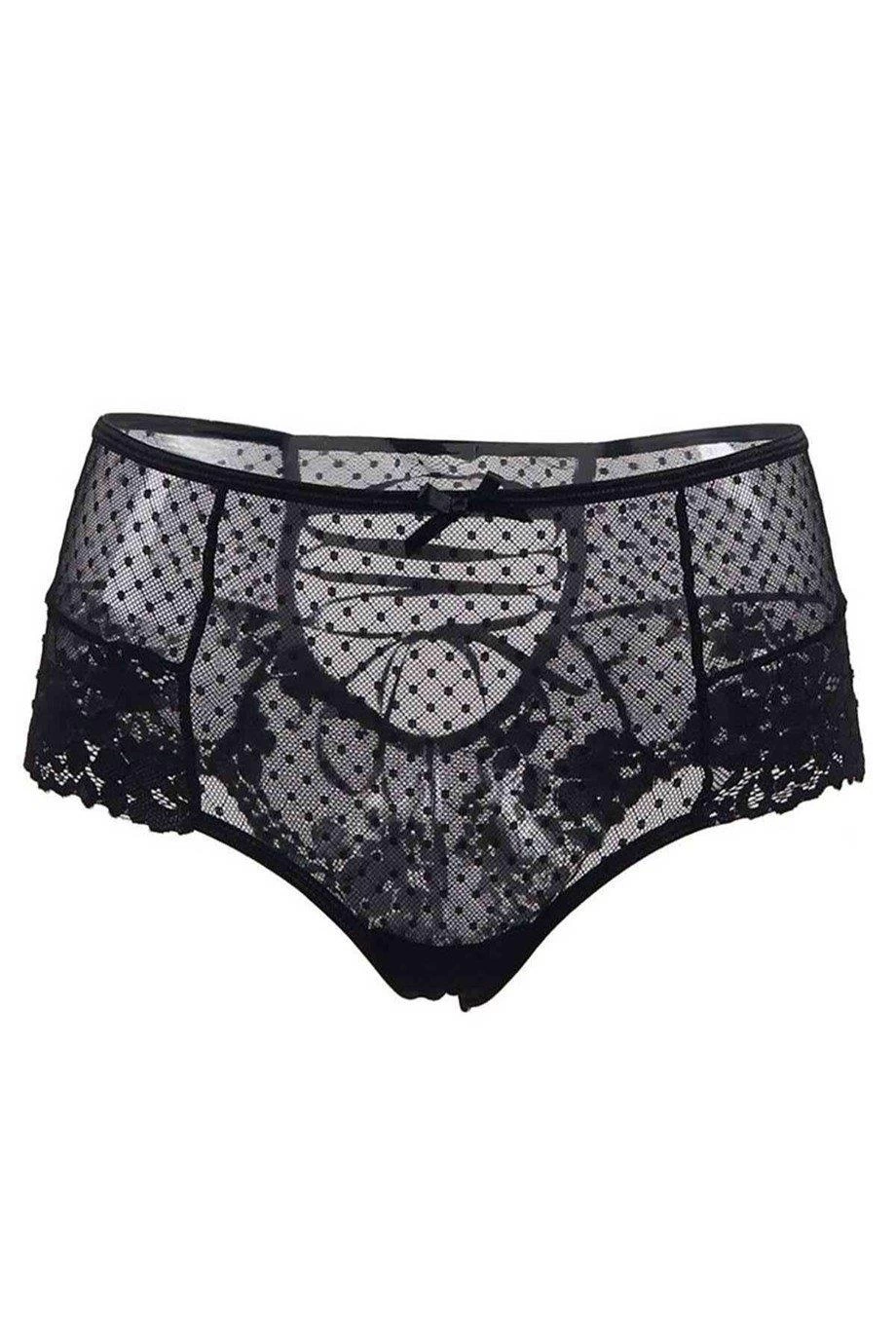 YNT Siyah Dantel Puantiyeli Kurdeleli Fantazi Külot String18006