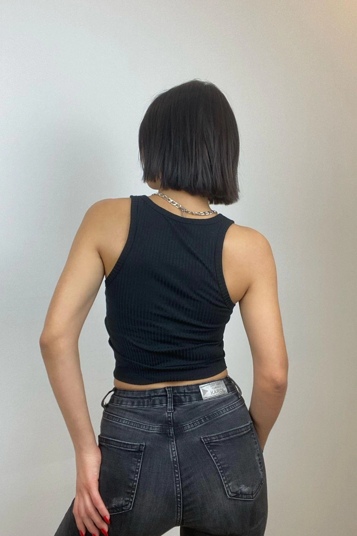 YNT Siyah Dekolte Detaylı Crop BN6585S