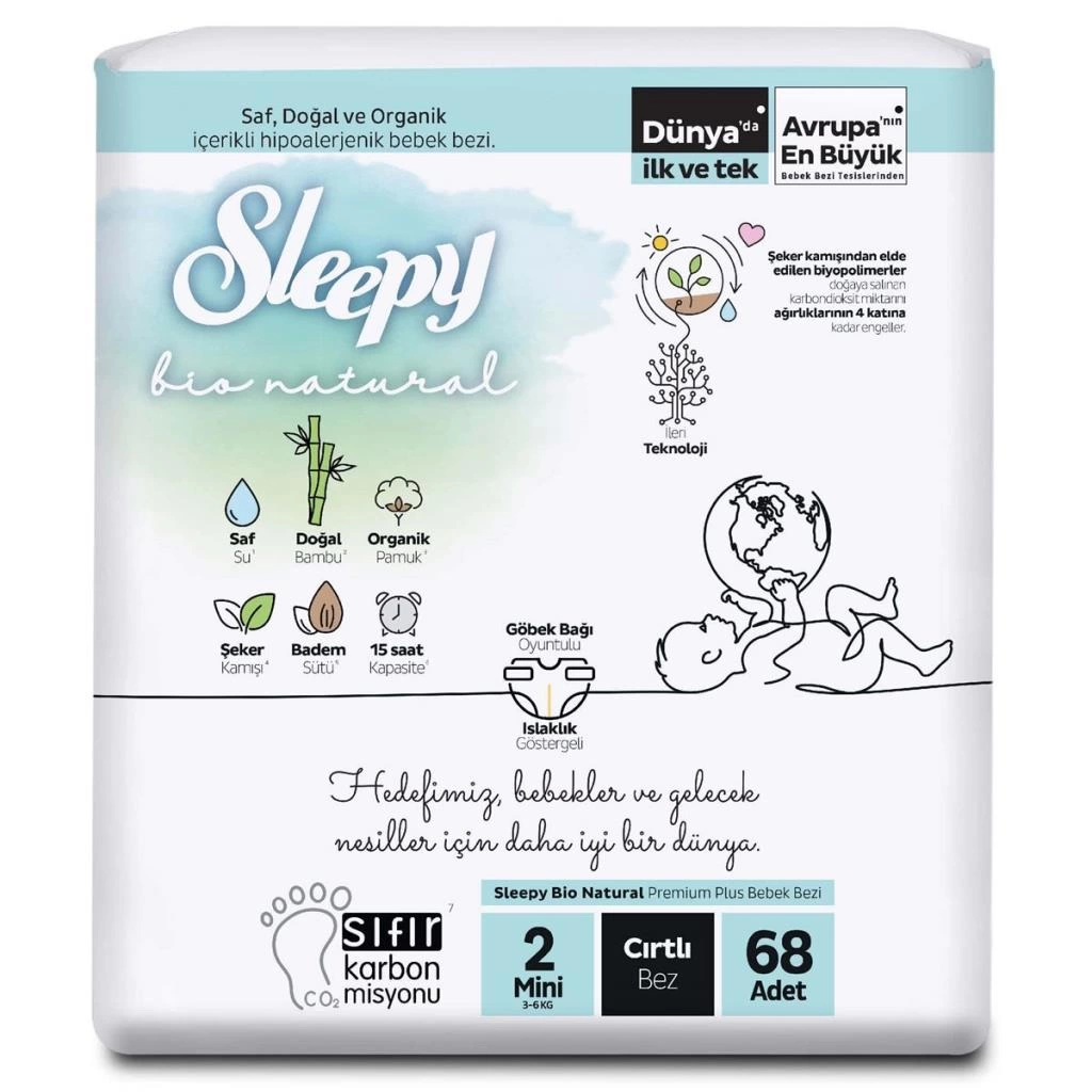 Sleepy Bio Natural Bebek Bezi 2Li Jumbo 2 Beden 3-6 Kg 68 Adet Özellikleri;