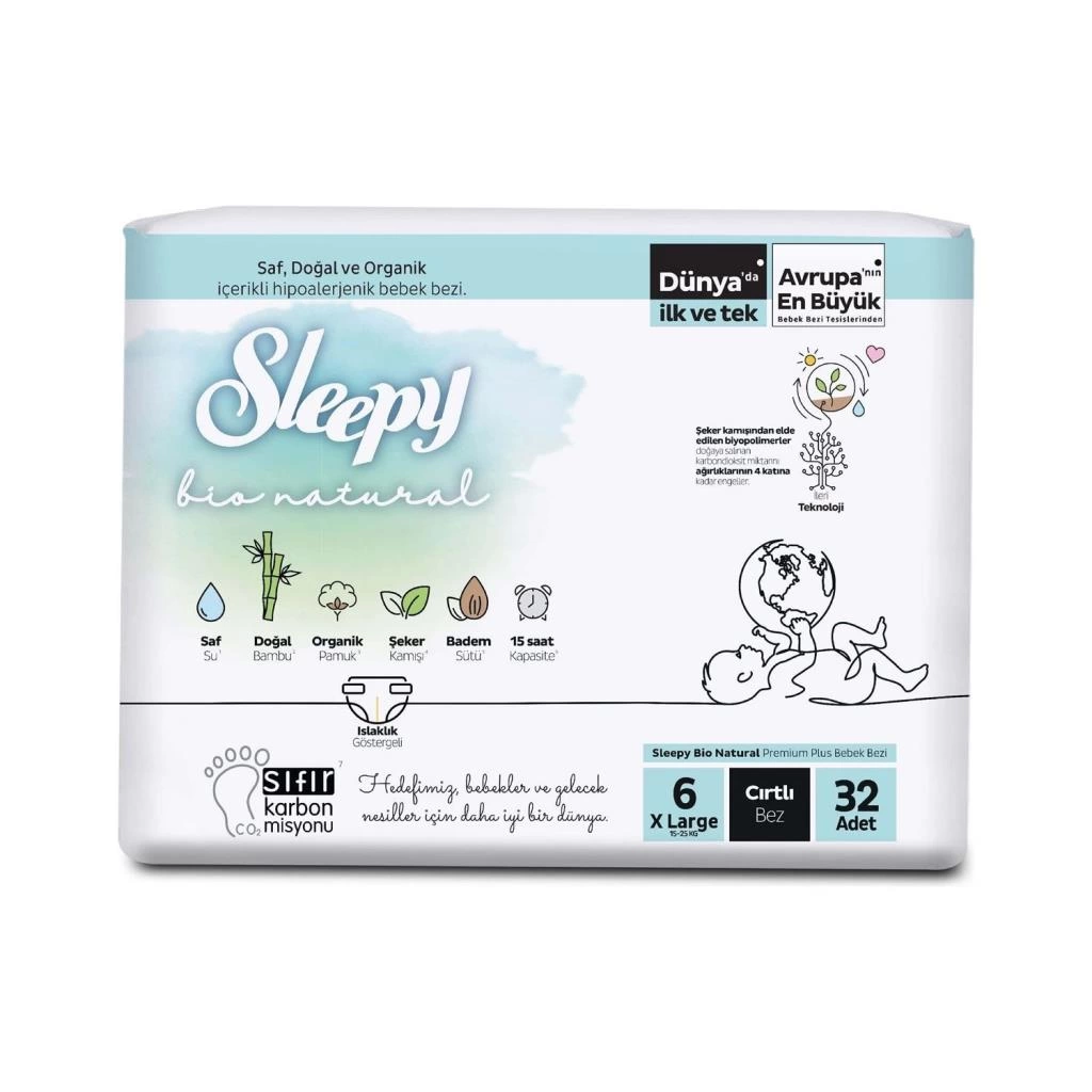 Sleepy Bio Natural Bebek Bezi 2Li Jumbo 6 Beden 15-25 Kg 32 Adet Özellikleri;