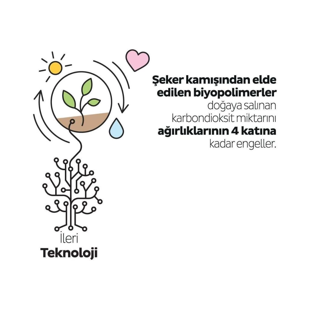 Ürünlerdeki film yüzeyler Oksijen üreten şeker kamışından elde edilen biyopolimerler içermektedir.