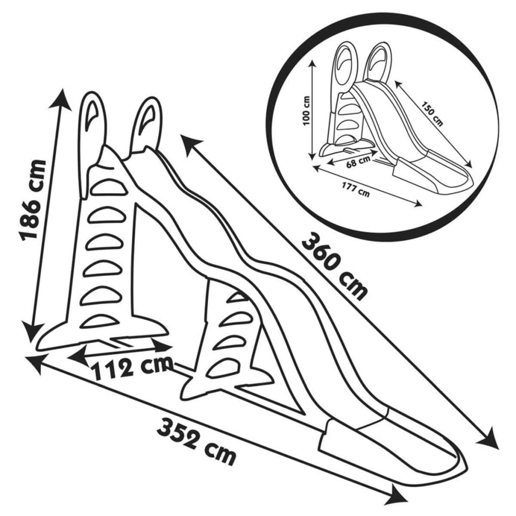 Uzatılmış kaydırağın boyutları: 352 x 186 x 360 cm.