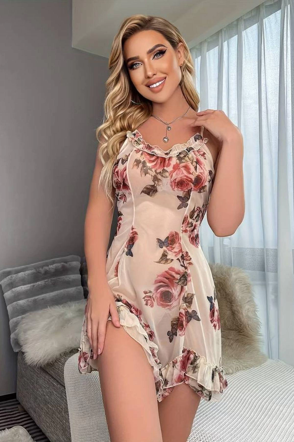 YNT Somon Çiçek Baskılı Mini Gecelik 15704 Bedenler : S-M-L-XL-2XL-3XL Materyal : Micro Not : Hijyen kuralları nedeniyle ürünlerde değişim ve iade kabul edilmemektedir. Yıkama Talimatı : Maksimum 30 C° sıcaklıka yıkayınız.