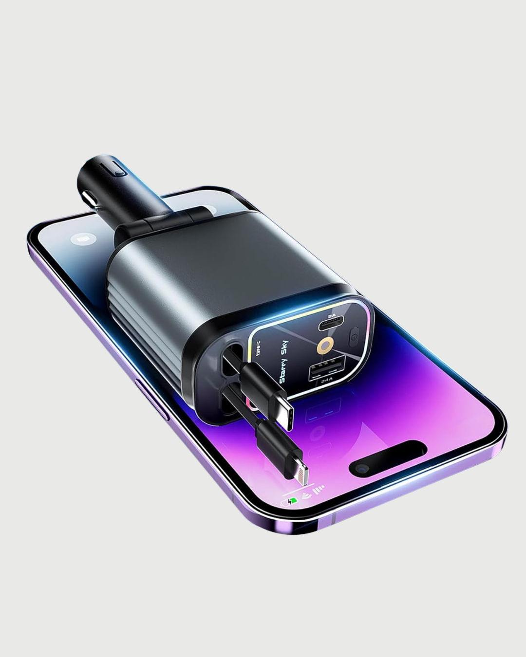 Toyota, Honda, Nissan ve Hyundai sürücüleri için ideal olan bu 4 portlu araç şarj cihazı, aynı anda birden fazla cihazı yüksek hızda şarj etmenizi sağlar. 66W gücü ile telefon, tablet, kulaklık ve dizüstü bilgisayarlarınızı kısa sürede güvenli bir şekilde şarj eder. Kompakt tasarımı ve çekilebilir kablo özelliği sayesinde kablo karışıklığını önler, aracınızda daha düzenli bir kullanım imkânı sunar.180 derece ayarlanabilir başlığı ile aracınızın farklı konumlarında rahatça kullanılabilir. Ayrıca gelişmiş PD ve QC teknolojisi sayesinde hızlı şarj sağlarken cihazlarınızı aşırı ısınma, voltaj dalgalanması ve akım fazlalığına karşı korur.Gece yolculuklarında atmosfer yaratacak LED ışık desteği, müzikle uyumlu olarak çalışır ve keyifli bir sürüş deneyimi sunar. Toyota, Honda, Nissan ve Hyundai gibi araç modelleriyle uyumlu olan bu cihaz, sürücülere hem pratiklik hem de modern bir görünüm kazandırır.
