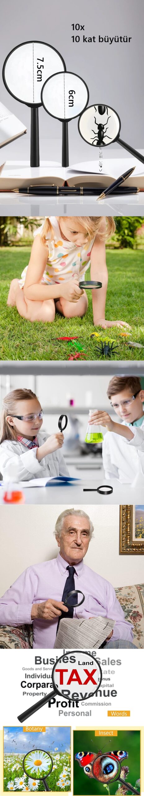 Yaygın Kullanım : Bu plastik mini büyüteçler iç ve dış mekanlarda kullanılabilir, çocukların doğum günü partileri, kutlamalar ve okul etkinlikleri için mükemmeldir. Çocukların bitkileri, hayvanları ve böcekleri yakından gözlemlemeleri, hayal güçlerini ve yaratıcılıklarını harekete geçirerek çocuklar için mükemmel bir küçük hediye haline getirebilir.
