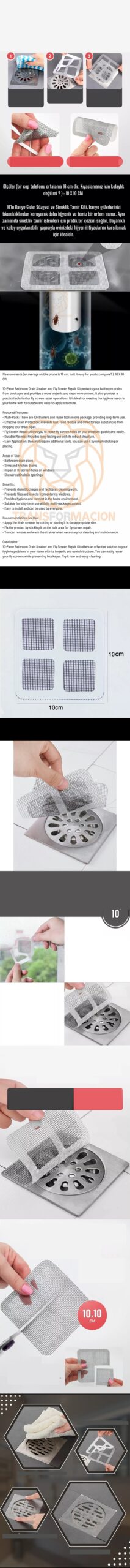 10’lu Banyo Gider Süzgeci ve Sineklik Tamir Kiti, banyo giderlerinizi tıkanıklıklardan koruyarak daha hijyenik ve temiz bir ortam sunar. Aynı zamanda sineklik tamir işlemleri için pratik bir çözüm sağlar. Dayanıklı ve kolay uygulanabilir yapısıyla evinizdeki hijyen ihtiyaçlarını karşılamak için idealdir.
