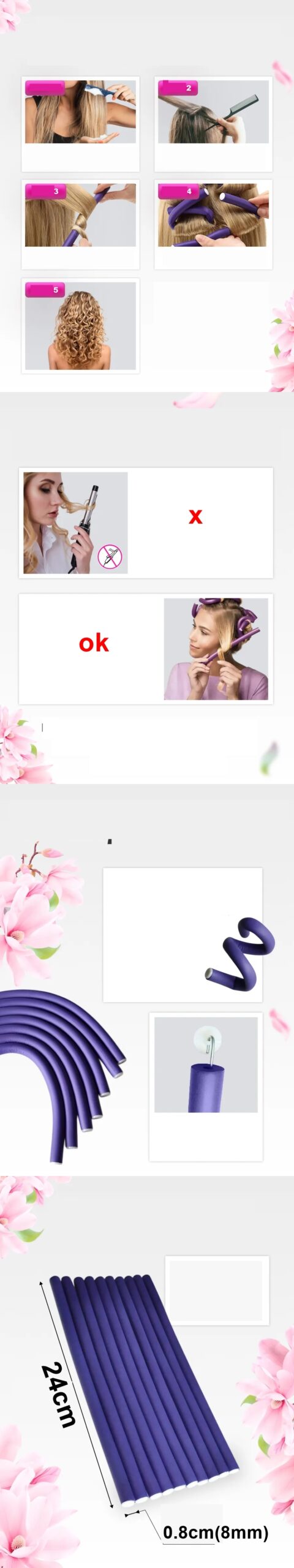 Bu yumuşak köpük saç çubukları, saçlar için esnek rulolar, esnek saç çubukları, bükümlü köpük saç bukle maşaları uzun veya kısa, ince veya kalın çoğu saç tipine uyacak ve en doğal, dalgalı, kabarık bukleleri oluşturmak için doğru boyuttadır. Uzun ya da kısa saçlara yönelik bu esnek çubukları aileniz ve arkadaşlarınızla da paylaşabilirsiniz.
