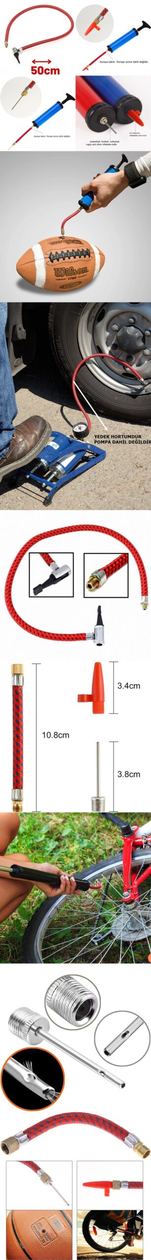 İğne boyutu 3.8 cm x Balon pompası ucu 3.4 cm x Küçük hortum 10.8 cm x Büyük hortum 150 cm