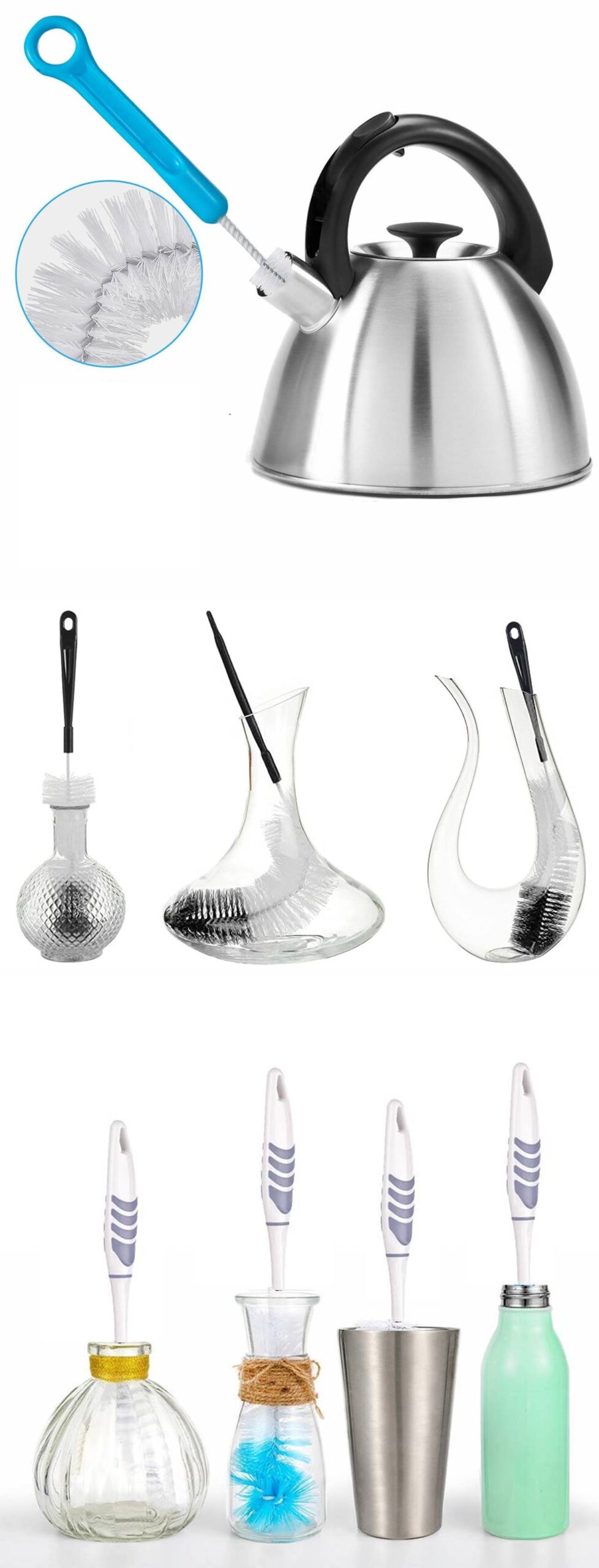 Fırçalar mutfak veya banyo ürünlerini temizlemek için güvenlidir. Güçlü kıllar, dar şişelere yerleştirmek için dayanıklı ve esnektir ve fırçayı rahat ve kolay bir şekilde kontrol etmek için uzun sapı bulunur.