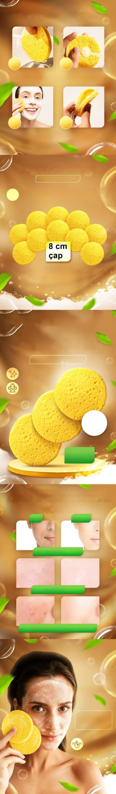 DOĞAL VE GÜVENLİ :Bu yüz peeling süngerleri, herhangi bir kimyasal madde içermeyen doğal bitki liflerinden yapılmıştır. Tahriş veya sert kimyasal koku olmadan temizler. Her cilt tipine uygundur, hassas ciltlerde bile güvenle kullanılabilir.
