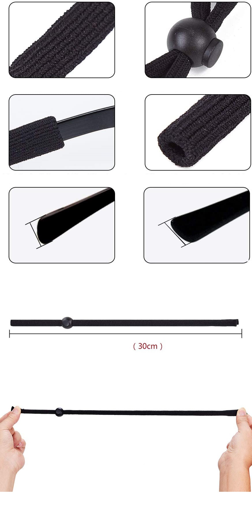 KONFORLU, DAYANIKLI, AYARLANABİLİR: Gözlük ipi , güçlü ve yıpranmayan maksimum güç ve streç için yüksek kaliteli naylon ve spandeks karışımı malzemeden yapılmıştır. Yumuşak malzeme ve hafif tasarım doğal olarak rahattır, bu nedenle hassas cilde sahip kişiler için güvenlidir. Sadece moda gözlük aksesuarı değil, aynı zamanda tamamen pratiktirler.