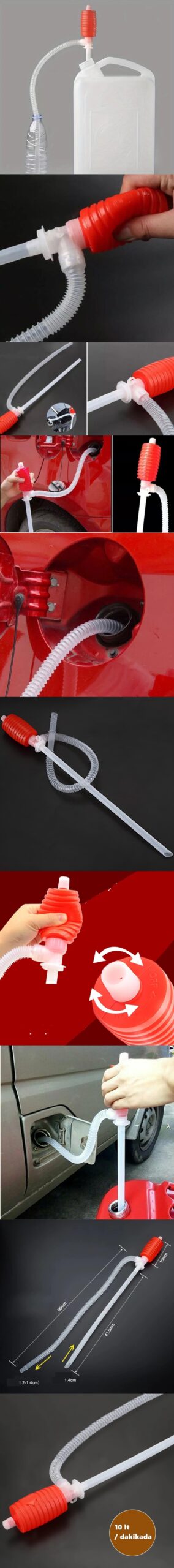Açılı ucunu yerleştirin sifon sıvı içinde ve diğer ucu kapta; akışı başlatmak için memeyi sıkın; Emmeyi durdurmak için memeyi sıvı hattının üzerine kaldırın veya vakumu serbest bırakmak için vidanın kapağını çevirin