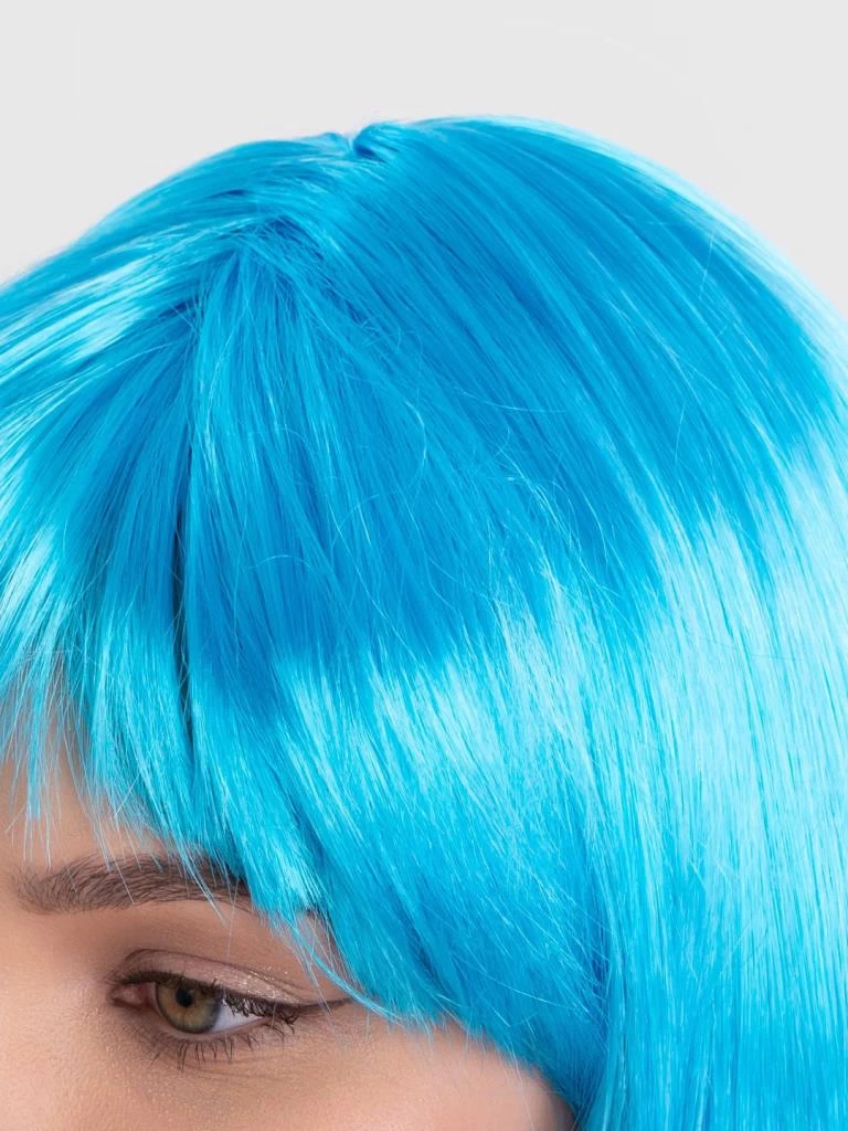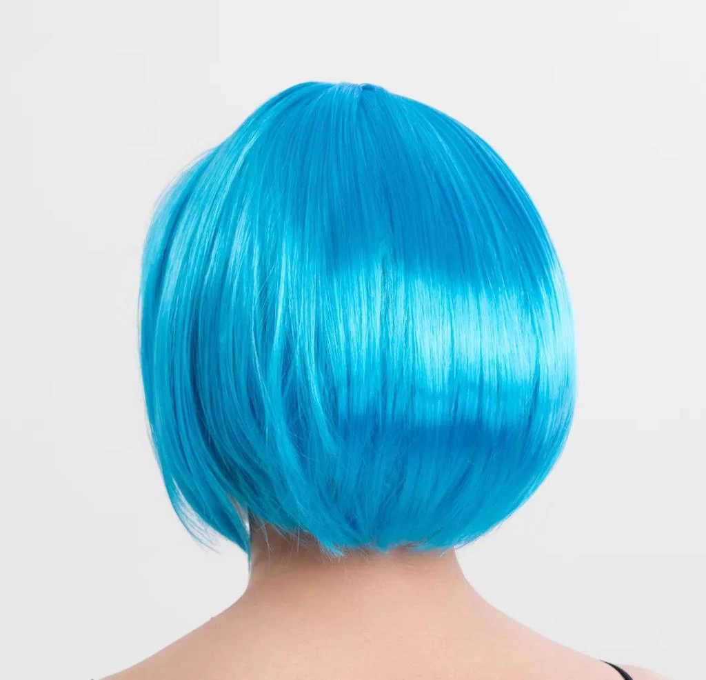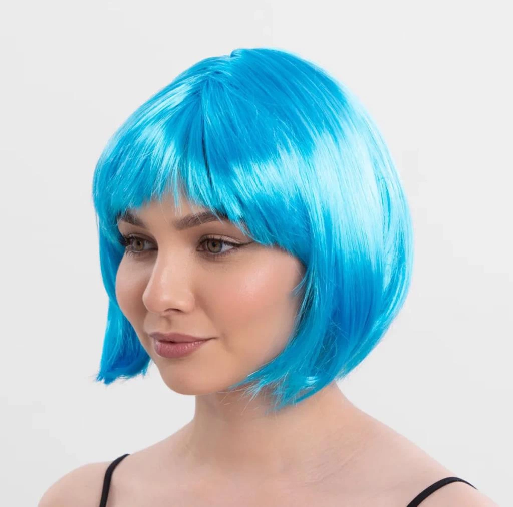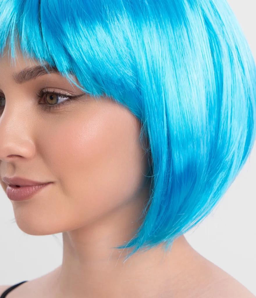 Turkuaz Açık Mavi Renk Düz Kesim Kısa Küt Parti Peruku – Cesur ve Şık Bir Seçim!