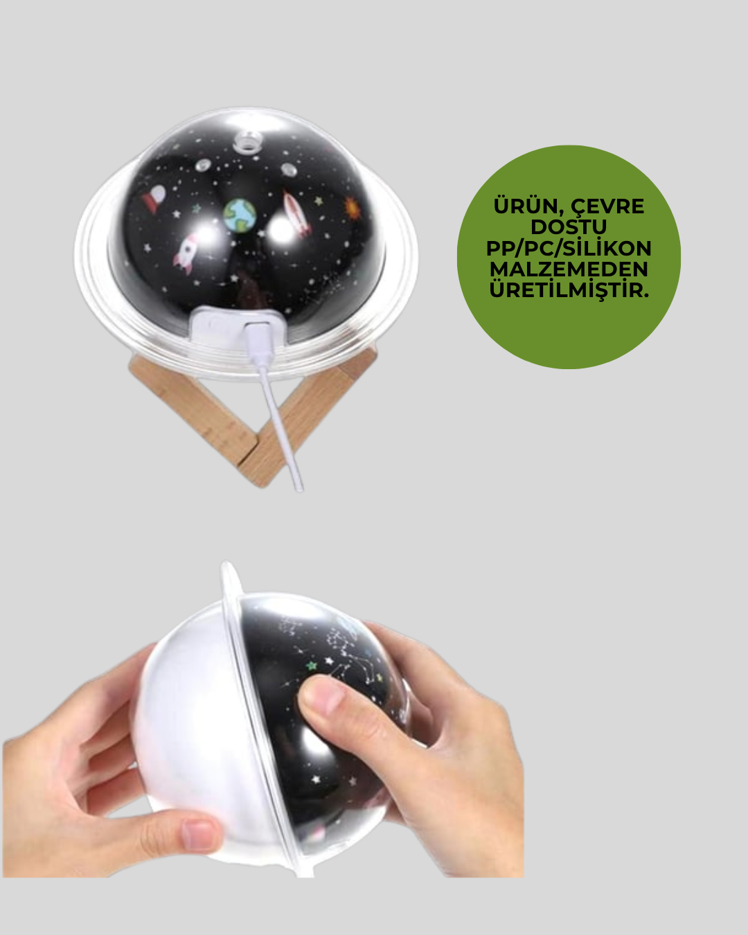 USB ile çalışan bu nemlendirici cihaz, gün içinde bilgisayar başında çalışanlar için idealdir. Sadece havayı nemlendirmekle kalmaz; projektör ışığı sayesinde rahatlatıcı bir görsel atmosfer de sunar. Yatak odalarında, bebek odalarında veya ofiste masa üzerinde kullanmak için uygundur.Cihaz aromaterapi özelliği sayesinde çeşitli esansiyel yağlarla da kullanılabilir. Bu, hem hava kalitesini artırır hem de stres azaltıcı etki sağlar. Kompakt ve hafif yapısı sayesinde seyahatlerde de kullanılabilir. Sızdırmaz hazne yapısı, uzun süre güvenli kullanım sunar.