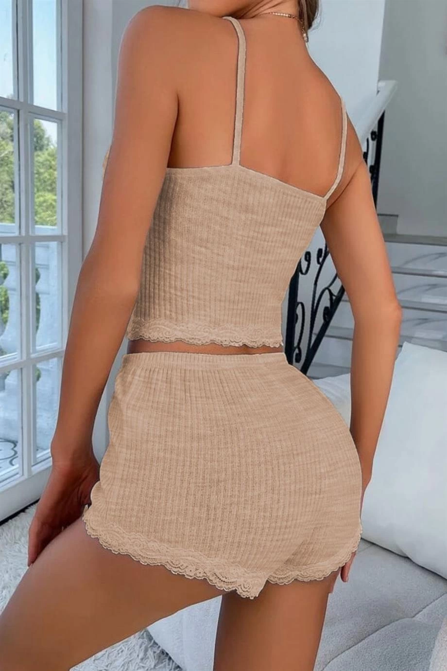YNT Viskon Koyu Krem Dantelli Hoş Şortlu Takım 7509