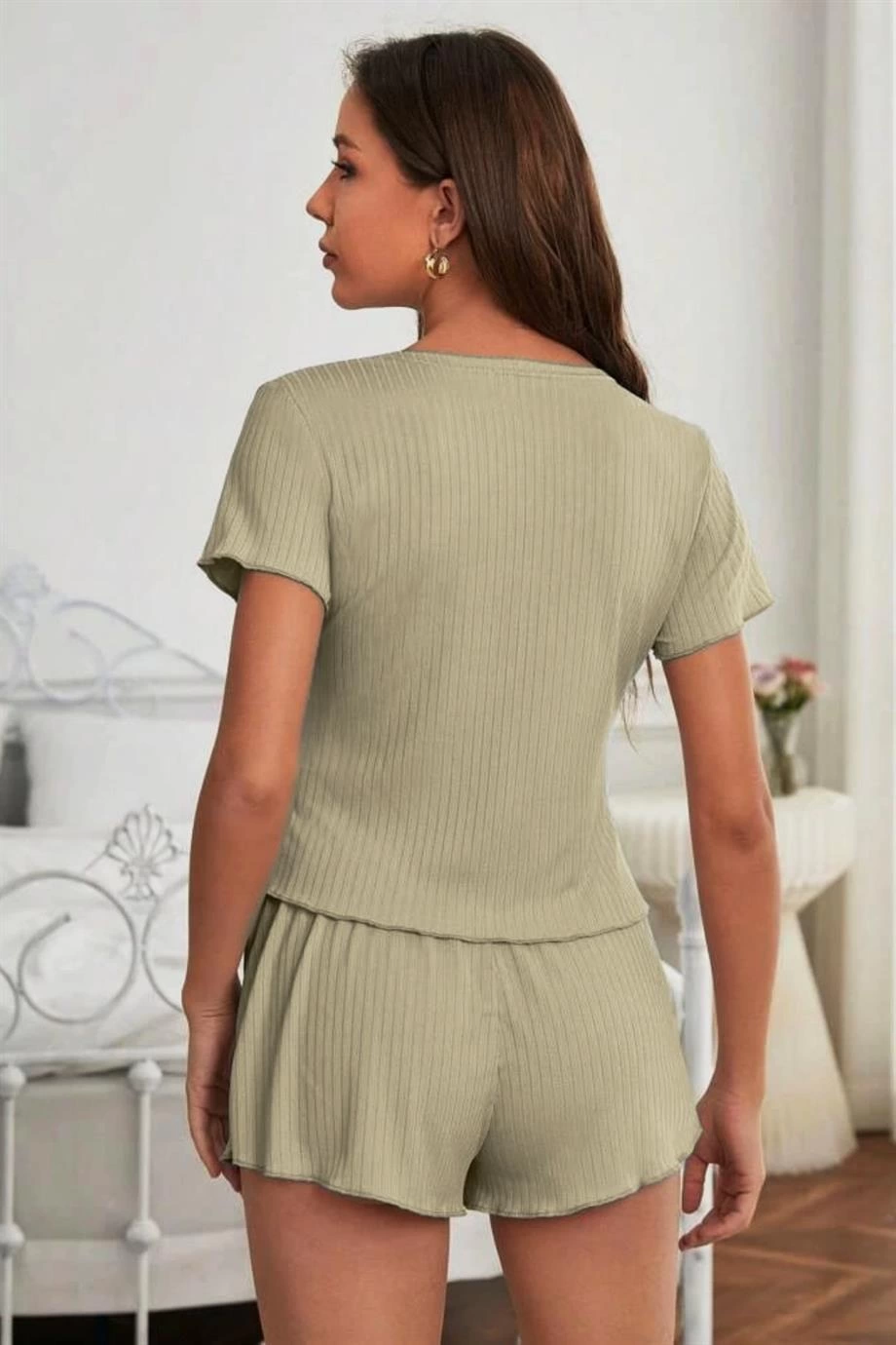 YNT Viskon Mint Yeşili Düğme Detaylı Kısa Kollu Şort Takım 7508