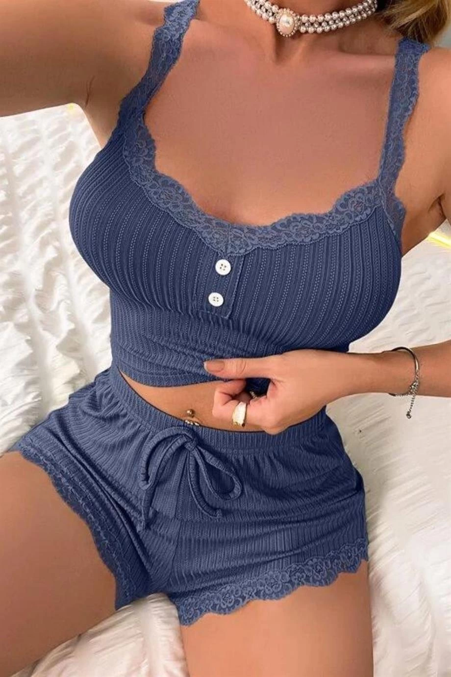 YNT Viskon Safir Dantel Detaylı Şık Şortlu Takım 7015