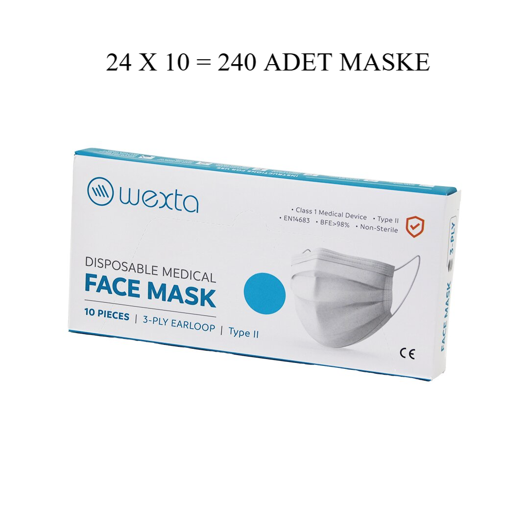 WEXTA BEYAZ 3 KATLI MEDİKAL CERRAHİ YÜZ MASKESİ 10PCS x 24 = 240 ADET (4172)