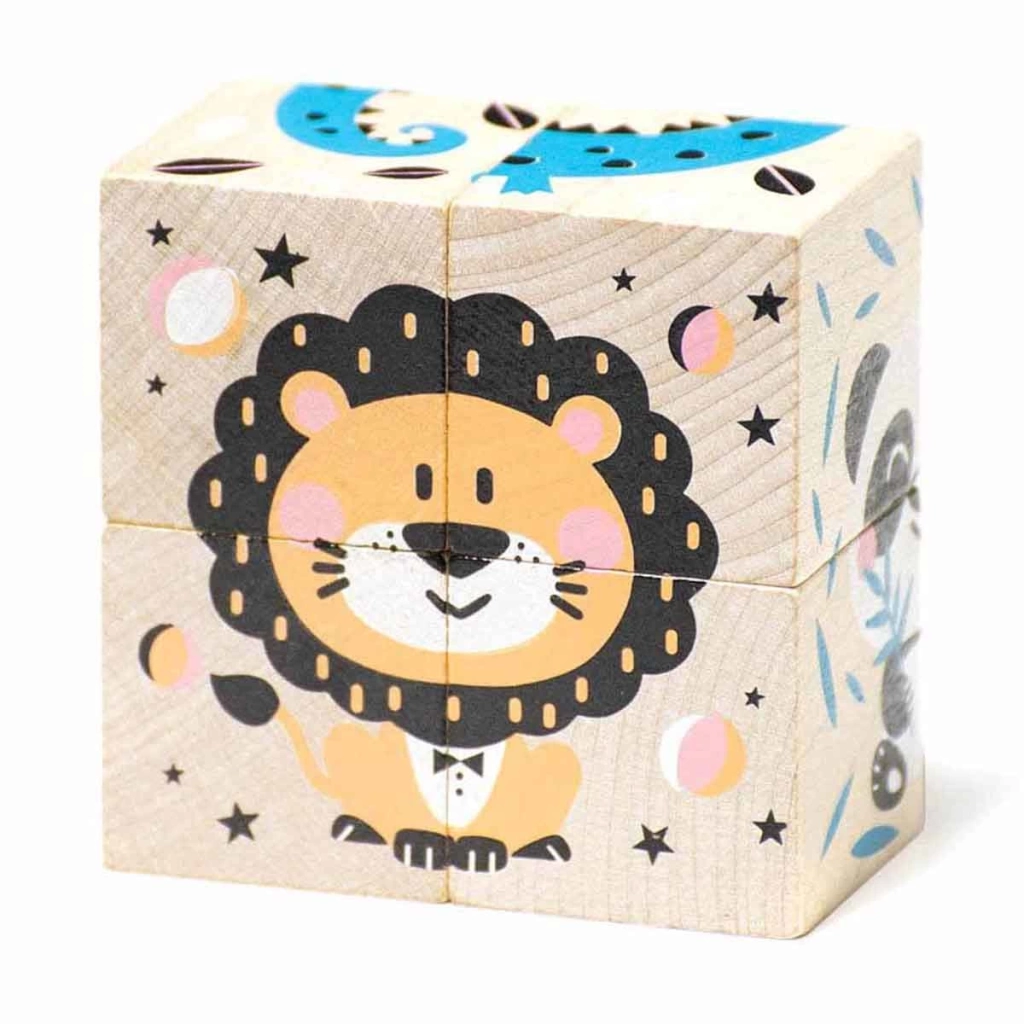 Sevimli Hayvanlar Küp Puzzle, ahşaptan üretilmiştir.