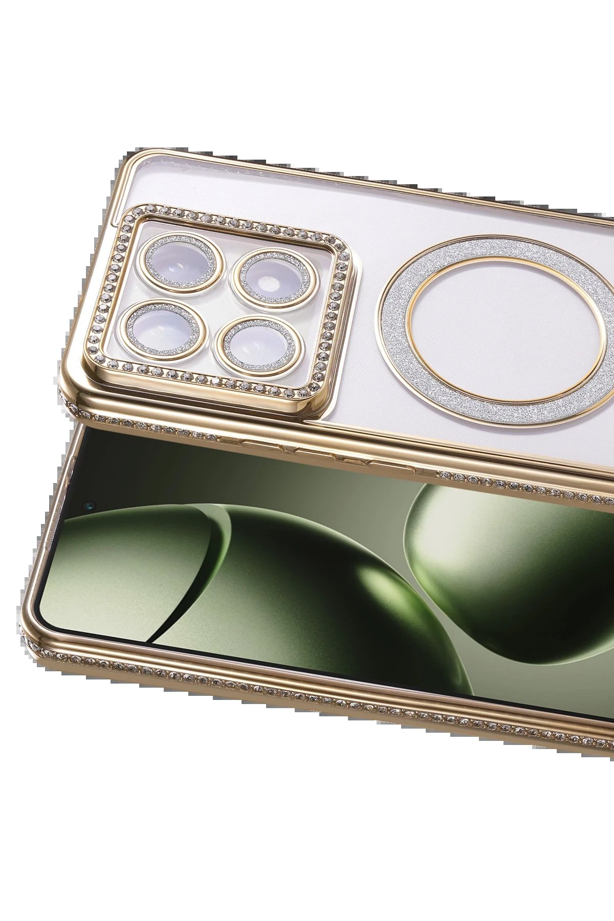 Bu kılıf, lens ve çerçevesi parlak elmaslarla tasarlanmış şık bir üründür. Cep telefonunuzun daha güzel ve çekici görünmesini sağlamakla kalmaz, aynı zamanda size farklı bir his verir.