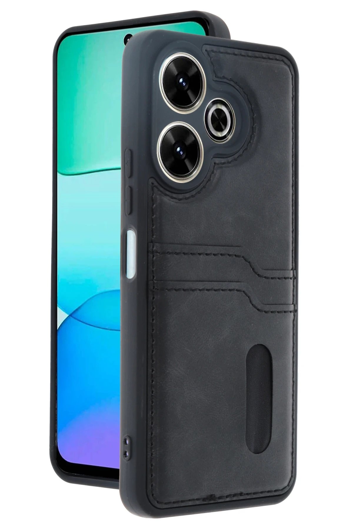 Xiaomi Redmi 13 4G Kılıf Sara Kartvizitli Deri Kılıf – Siyah-(5796)