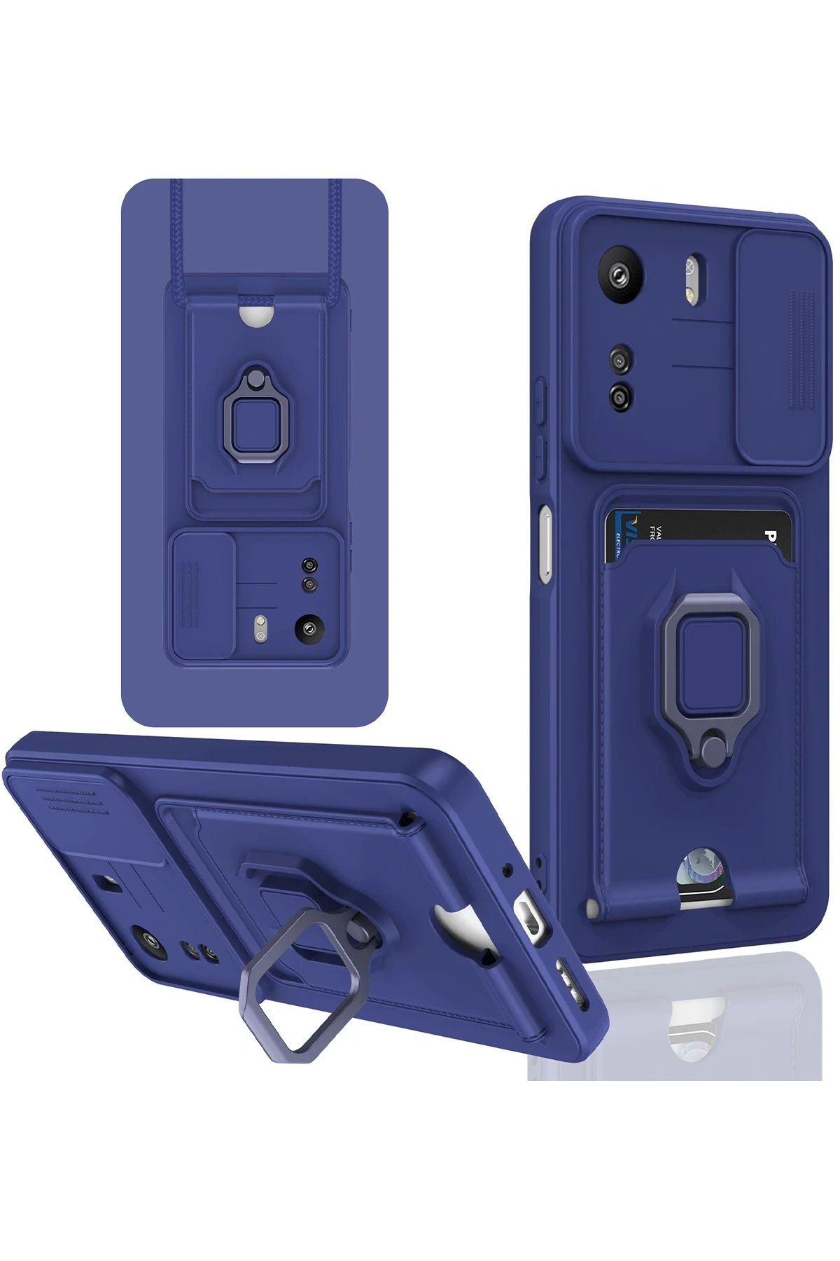 Xiaomi Redmi 13C Kılıf Zuma Kartvizitli Yüzüklü Silikon – Lacivert-(5796)