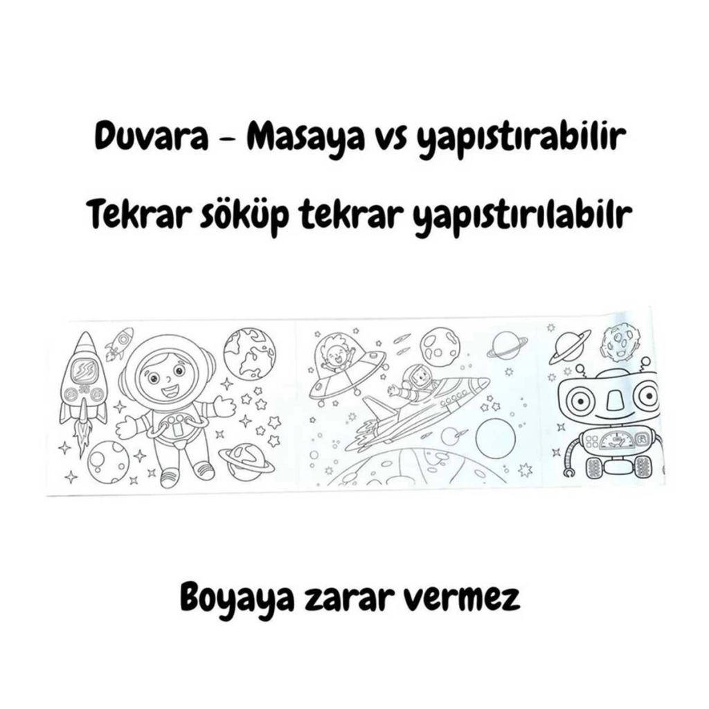 Bu büyük boyama rulosu, çocuklarınızın hayal gücünü serbest bırakmasına ve sevimli uzay figürlerini renklendirerek