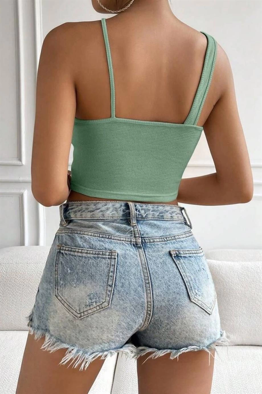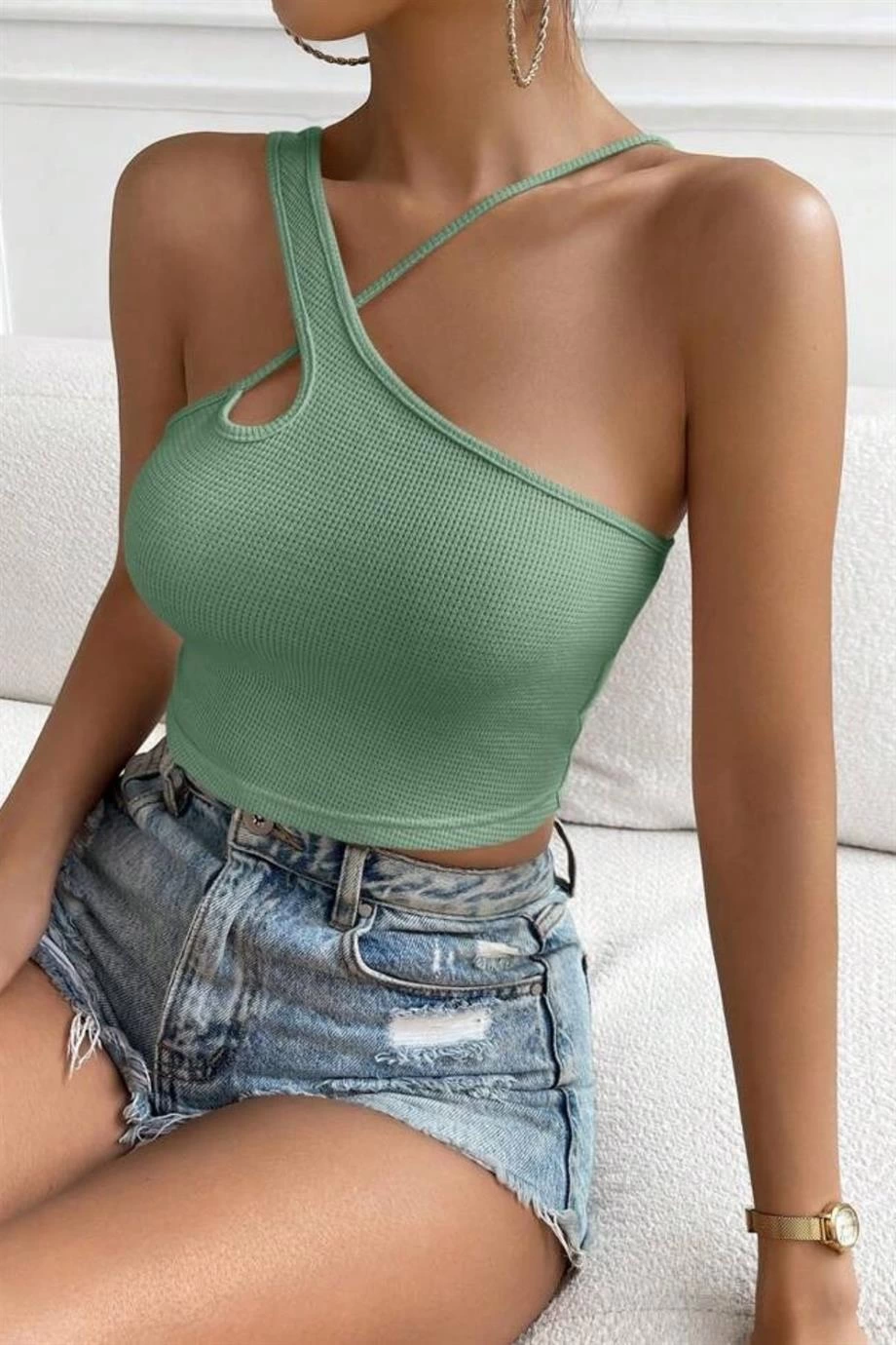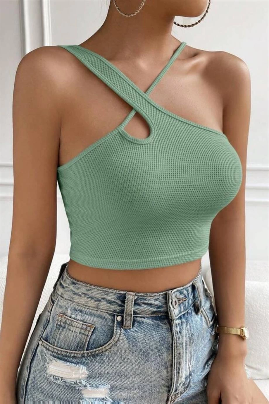 Yeşil Boyundan Çapraz Askılı Crop BN6570Y