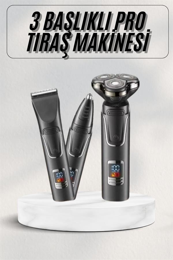 Yüksek Performanslı 3 Başlıklı Profesyonel Şarjlı Islak ve Kuru Kullanıma Uygun