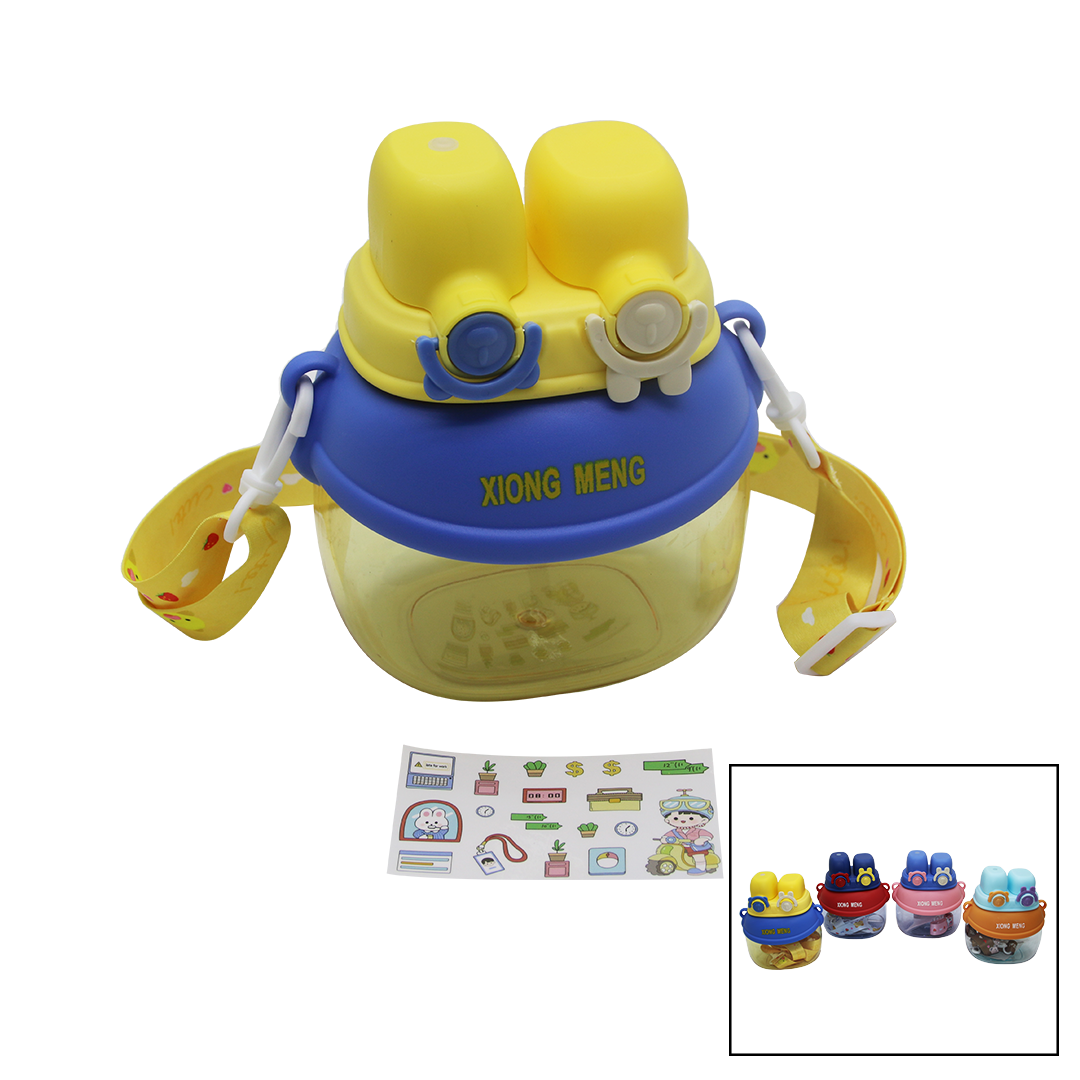 YÜZ MODELİ – 2 KİLİTLİ KAPAK RENKLİ MİKA KRİSTAL SULUK MATARA PİPETLİ – NAYLON ÇANTALI – ASKILI 1280ML