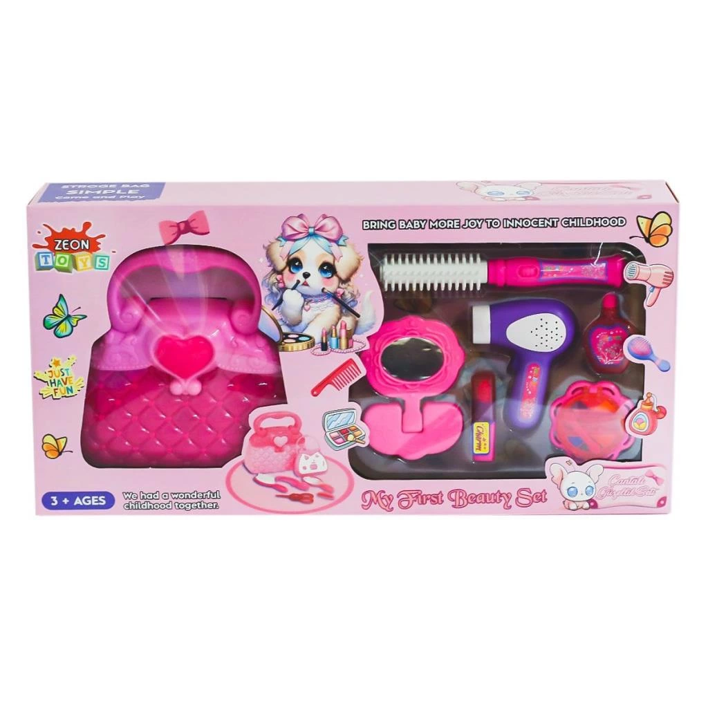 İçerisinde tarak, saç kurutma makinesi, parfüm, ruj, ayna, far seti ve çanta bulunmaktadır.