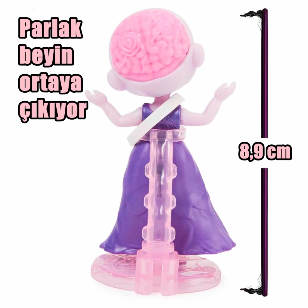 Kutuyu temalı çıkartmalarla süsleyin, zombi bebeğinizi standında sergileyin ve koleksiyoncu kartını ön tarafta konumlandırın. Bir tarafında özel karakter çizimleri, diğer tarafında ise sevdiği ve hoşlanmadığı şeyler var! Süper sevimli ayrıntıları, saç ve bacakları karıştırıp eşleştirmesiyle bu kız oyuncakları, taklit oyunlar için mükemmel küçük oyuncaklardır ve her bebek, eğlenceli bir kıpır kıpır oyuncak görevi de görür.